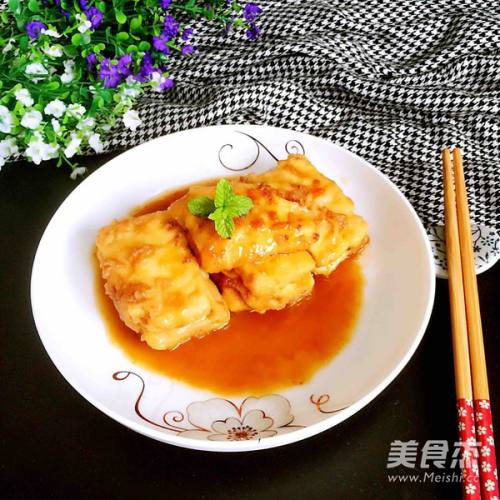 锅塌豆腐是山东经典的汉族名菜之一,属于鲁菜。锅塌是鲁菜独有的一种烹调方法,它可做鱼,也可做肉,还可做豆腐和蔬菜。其特点是豆腐经过调料浸渍,蘸蛋液经油煎,加以鸡汤微火塌制,十分入味,又可称为“锅塌豆腐夹馅”,成菜呈深黄色,外形整齐,入口鲜香,营养丰富。我今天做的方法不太正宗,豆腐没有煎而是炸了一下!不过我家女儿吃了直呼太好吃了!因为里面我用了自己熬制的虾籽酱油,实在太鲜美了!