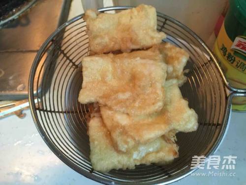 15油锅烧到七层热,放入豆腐块(正宗的锅塌豆腐应该是煎的)