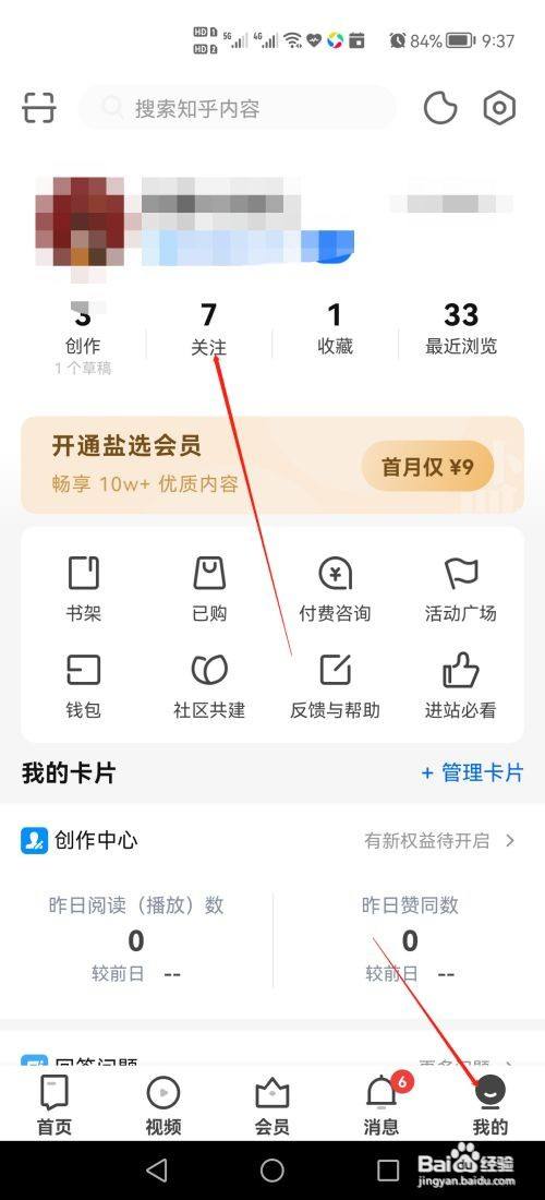 第一步、打开知乎,点击我的,点击上方的关注