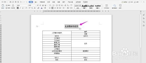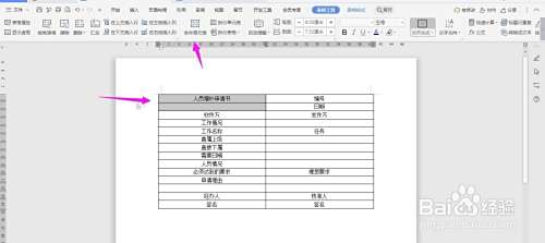 在表格上面输入“人员增补申请书”字体加粗、居中、调大,这样表格就制作完成了