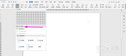 打开Word文档,点击导航栏上的“插入-表格”,选择“插入表格”