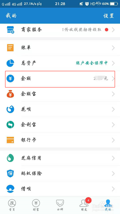 进入支付宝账户余额页面后,找到右上角的设置选项,然后点击进入。