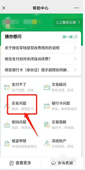 进入到帮助中心后,点击实名问题。