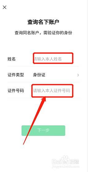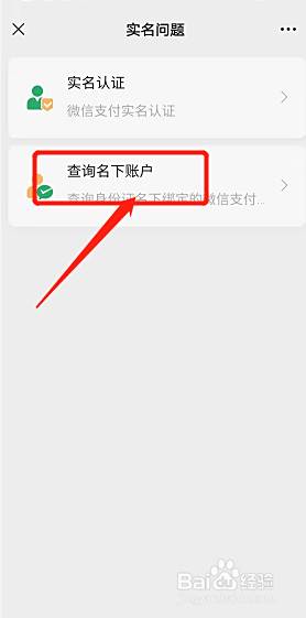 在实名问题页面,点击查询名下账户。