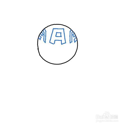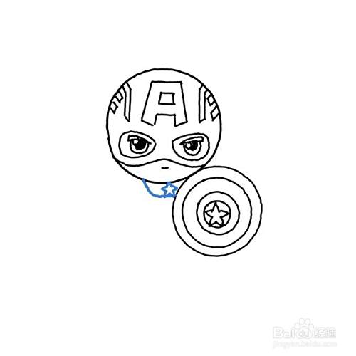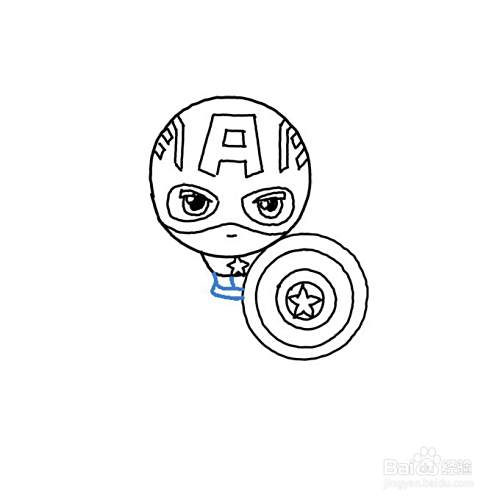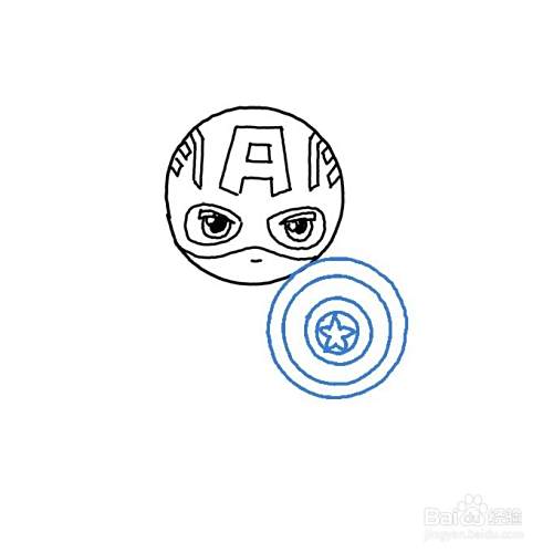 然后,画出美国队长头顶上的字母A和其他细节内容。