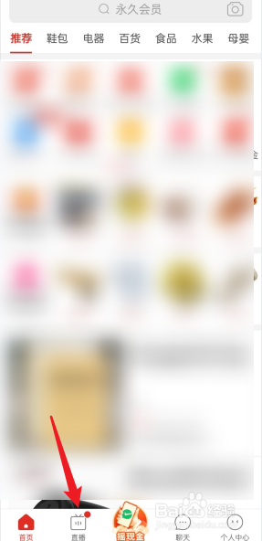 打开拼多多APP,点击下方的直播。