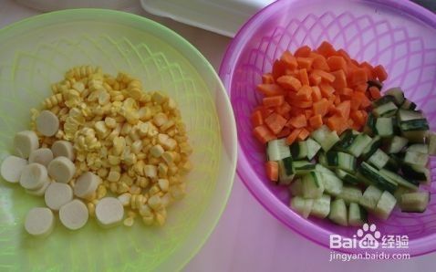 胡萝卜,黄瓜切块,玉米准称宋备好
