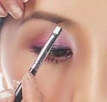 化眼妆之后眼头部分使用散粉,可以起到提亮眼妆的效果