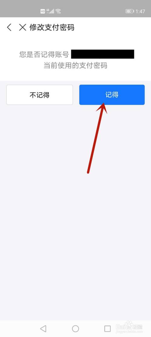在修改支付密码的页面,选择【记得】或者【不记得】。