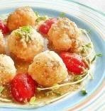 将炸好的虾球摆入盘中,佐以其它如小番茄.小豆苗等盘饰配菜后..再淋上调好的酱汁就ok喽!
