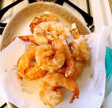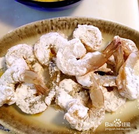 再在炸粉中裹一圈,一个虾就裹好了。