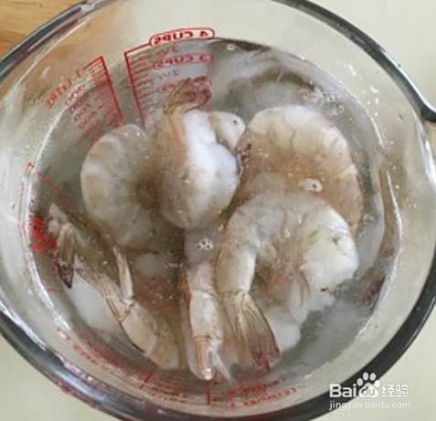 大农村难买新鲜的虾,所以用冷冻开背虾吧,倒也省事儿。先放冷水里解冻。如果你买了新鲜的虾,要去虾头虾线喔