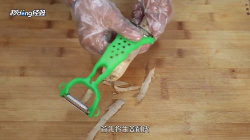 1将生姜剥皮,将切成片生姜放入大型碗中。