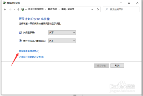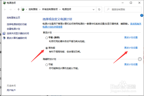 5、选择高性能,让CPU能处于最佳性能状态;点击更改计划设置。