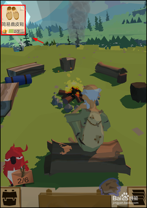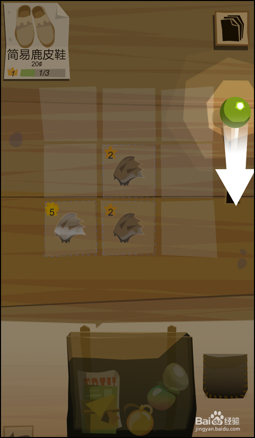 进入游戏后,当捡的东西齐全时,页面会弹出制作皮鞋的按钮,如图所示