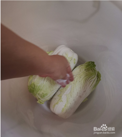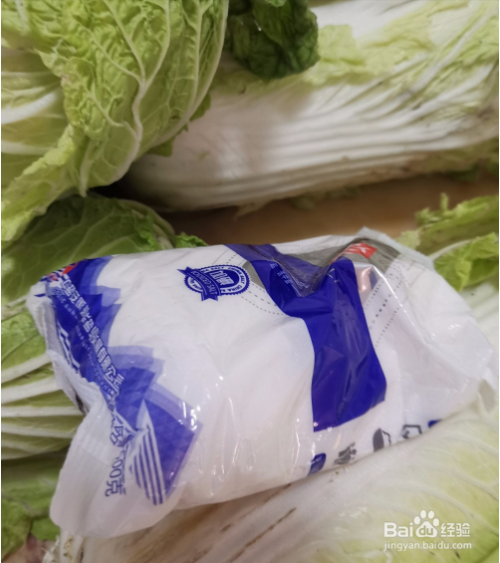 大白菜买回来待用,准备好大粒盐,然后将大白菜叶子烂叶子去除。