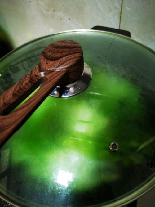 2锅中加入半碗的清水,开火将水烧开,加入1勺香油