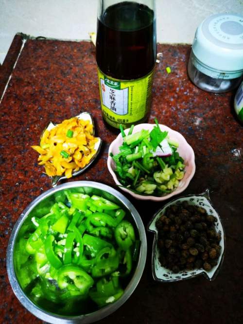1准备好材料。辣椒去粒切圈,姜葱蒜切断备用。