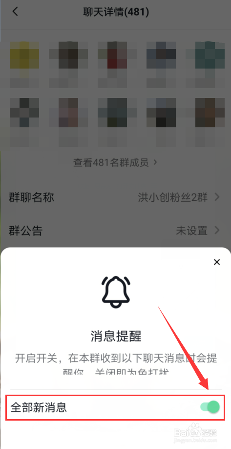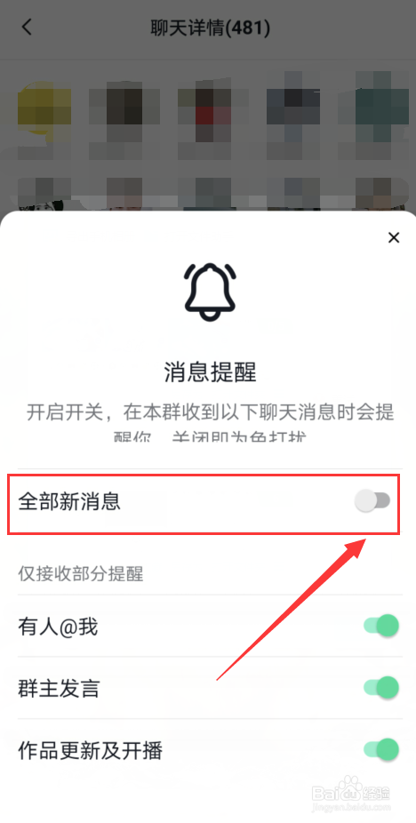 把【全部消息】右边的滑钮关闭。