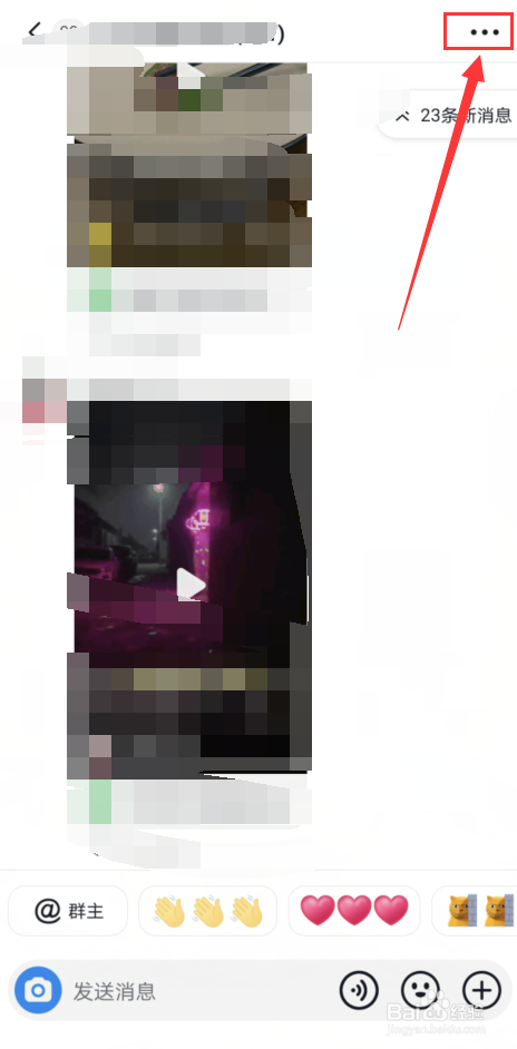 在聊天窗口点右上角【三点】符号。