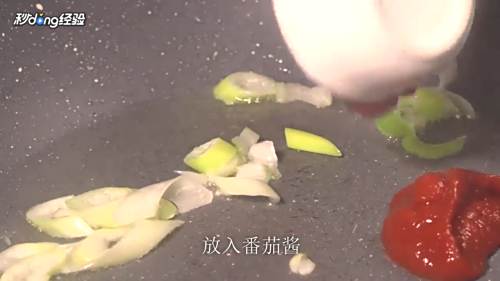留底油放入葱花爆香,放入番茄酱,白醋炒出香味。