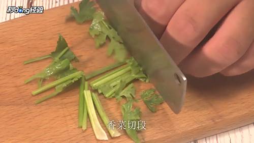 倒入肉片、胡萝卜、香菜,快速翻炒均匀即可。