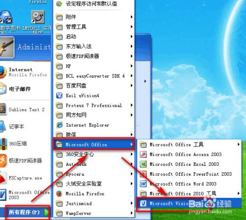 打开win,所有程序,office,visio,如下图。
