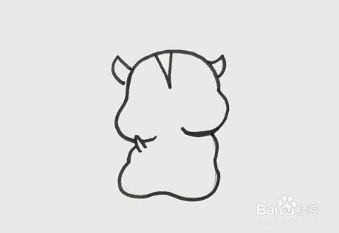 先画出两只小小的耳朵,往下画出头部的轮廓,在右边画出圆鼓鼓的肉肉,让小仓鼠变得更加得可爱。