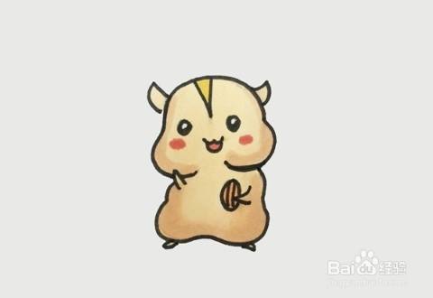 给身体涂上淡黄色。用黄色在仓鼠的身体画出一圈轮廓,脸颊涂上粉红色。一只萌萌的小仓鼠就画出来了。