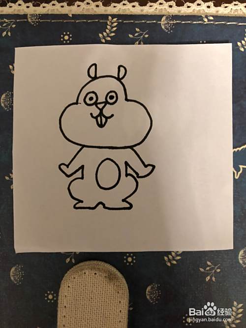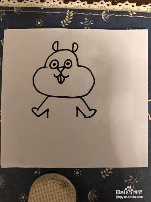 之后,我们再画出小松鼠的耳朵,以及他的牙齿,他的手是张开往上翘的以及他的身体都是看起来显得非常可爱的。