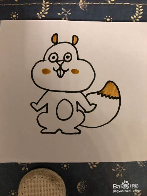 最后一个不就是给我们的小松鼠,加上它的颜色可以选用水彩笔或者油画棒来进行上色。