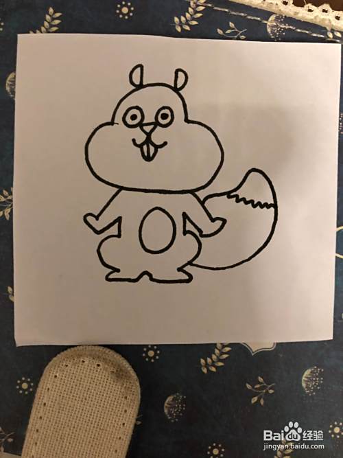 如图所是这一只小松鼠的下半身是比较可爱的双手打开翘起腿是和脚一起蹲下来的,所以他的下半身小朋友并不是很好的,能够掌握这里,还需要老师家长来进行指导。