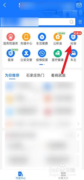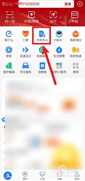 点击首页的市民中心。