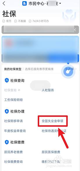点击右边全国失业金申领。