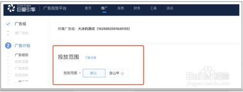 选择投放范围。投放范围分为默认和穿山甲两大类,其中默认投放范围包括今日头条、西瓜视频、抖音、火山小视频等巨量引擎旗下产品,穿山甲的流量主要来自厂商流量和其他知名APP。因为我们要投放抖音广告,所以选择默认即可。