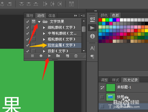 文字效果选拉丝金属,单击播放按钮。