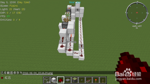 利用红石火把向上连续激活的功能,用来控制活塞: