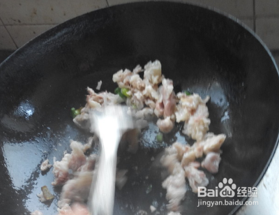 再下入蹄筋微微小炒一下后,加入料酒走一走,下老抽和食用盐、鸡精。