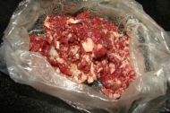 2肥肉切成簿片,用生粉,生抽盐油糖腌好。(这是老板帮手切的,他的刀法好,牛肉如纸一样的簿)自己可以省下这活儿。