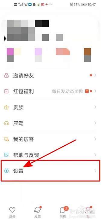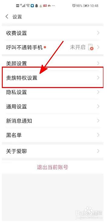 进入设置界面后,点击页面中的贵族特权设置菜单。