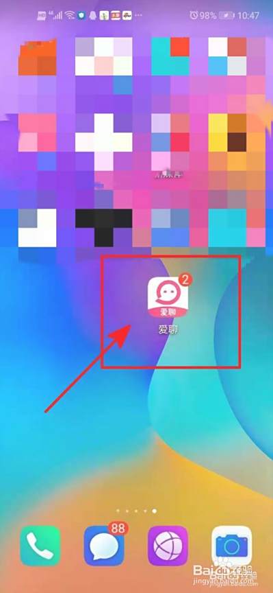 打开手机,解锁系统。找到爱聊,然后点击进入软件。
