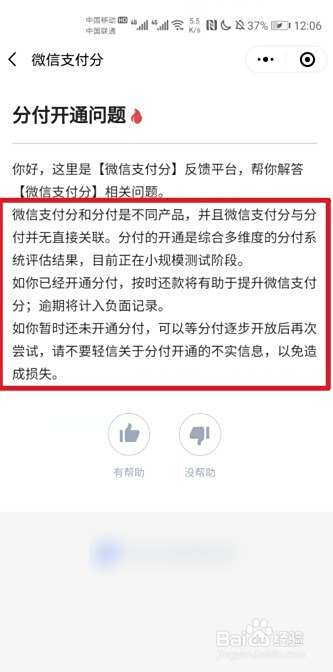 结果展示:微信支付分与分付是两回事,而且没有关联,开通了的能贷款并不是支付分的问题,分付的开通是综合多维度的分付系统评估结果而决定的。