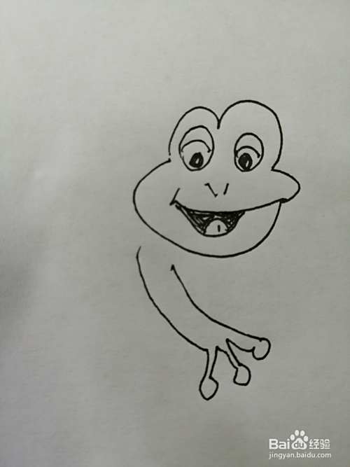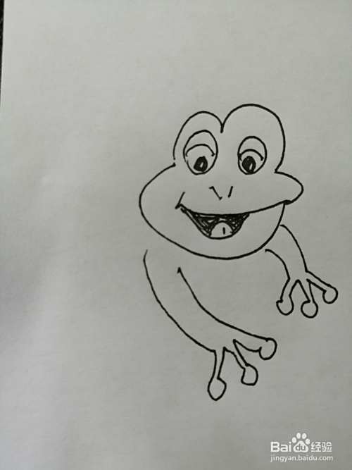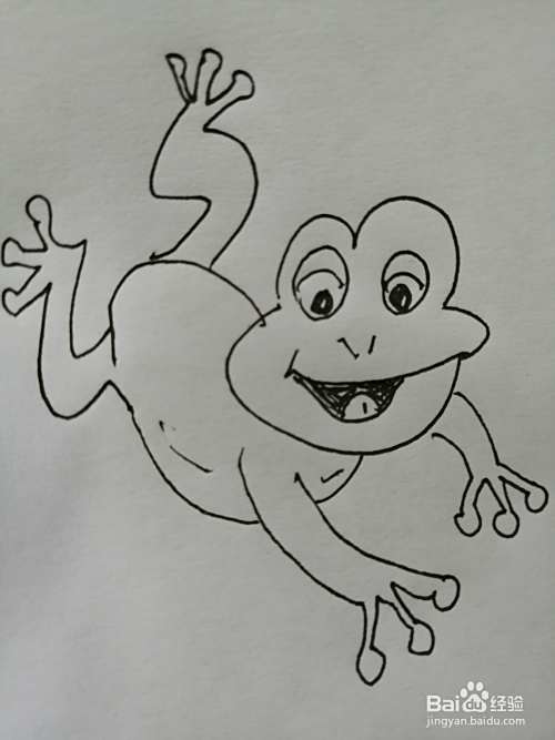 第七步,最后把可爱的小青蛙的两条腿画完整。可爱的小青蛙就画好了。