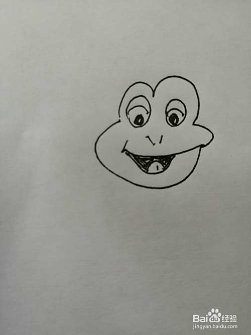 第四步,然后把可爱的小青蛙的小嘴巴画出来,嘴巴画法比较简单。