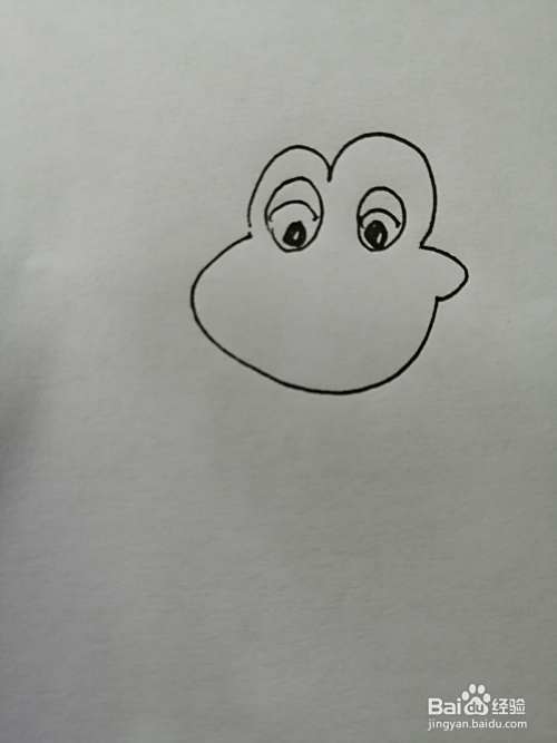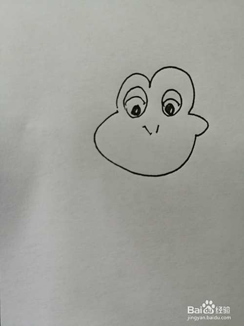 第二步,接着继续画出可爱的小青蛙的头部轮廓,注意头部细节的画法。