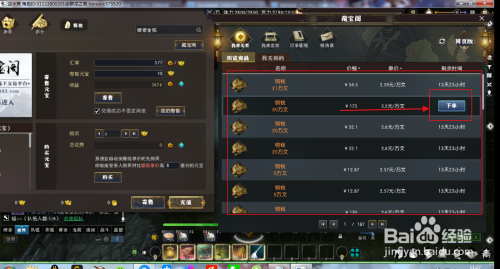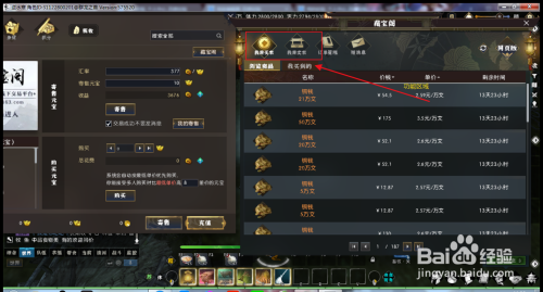 点击“寄售”功能以后就可以在弹窗上看到藏宝阁了。点击即可打开藏宝阁功能。
