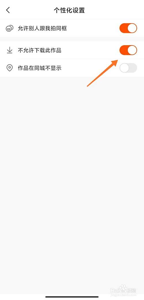 进入到个性化设置页面后点击开启不允许下载此作品。