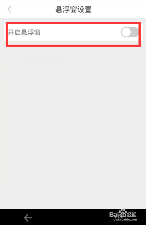 然后就会看到有一个“开启悬浮窗”选项,我们单击该选项后方的绿色按钮。