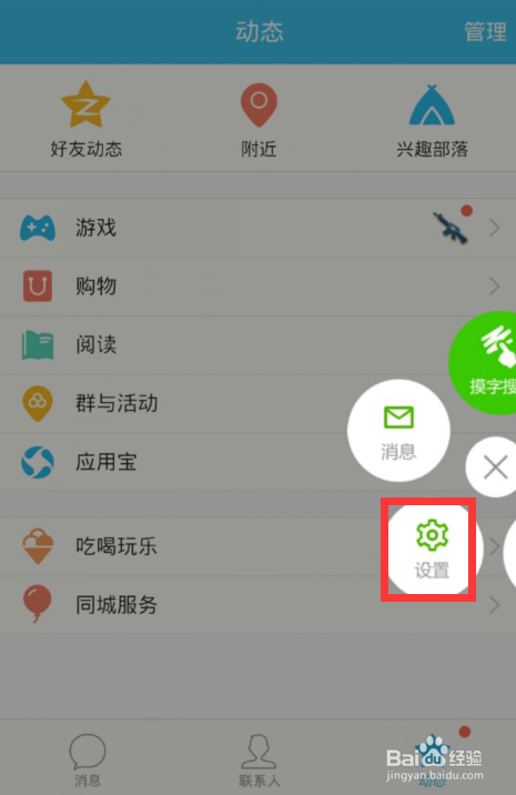 上拉之后就会出现一个“设置”的选项,此时我们单击该选项。