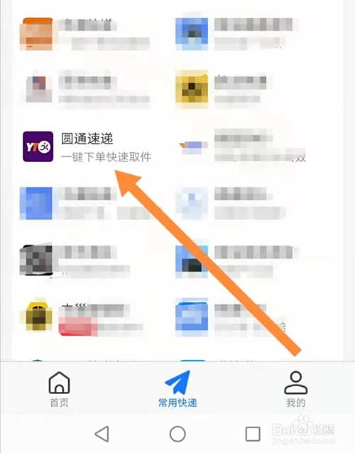 第三步,进入“常用快递”界面,点击“圆通速递”